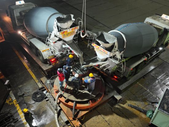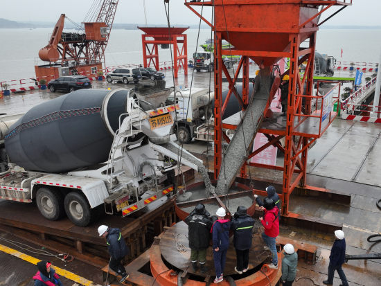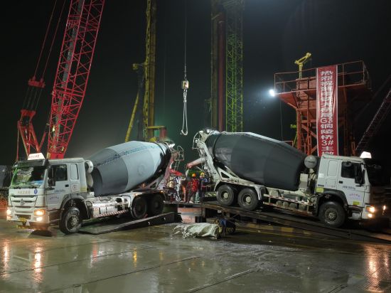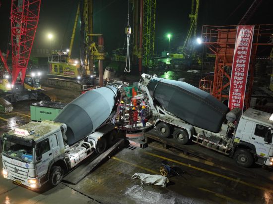 “此次灌注的是3號主墩19號樁。3號主墩共有68根鉆孔樁,每根樁直徑3.0米,樁長95米,成孔深度達122.5米,入巖深度約71.4米,鉆進施工采用徐工XR580HD、XR600E和XR700型旋挖鉆機逐級擴孔鉆進成孔。”中鐵大橋局G3銅陵長江公鐵大橋項目一分部總工程師宋海濤介紹,G3銅陵長江公鐵大橋是世界首座雙層斜拉-懸索協作體系大橋,3號墩和4號墩是大橋的兩個主墩,承載988米的主跨一跨過江。
