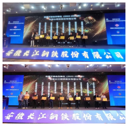 3月27日下午,通馳商貿公司受主辦方邀請參加了由長江鋼鐵和上海鋼聯聯合主辦的“2023鋼鐵中國·安徽黑色金屬產業(yè)鏈高峰論壇”,現場被馬鞍山鋼鐵股份有限公司、安徽長江鋼鐵股份有限公司分別授予“優(yōu)質下游合作單位”榮譽稱號。