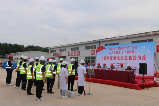 “人人講安全,個個會應急”是第22個全國“安全生產月”活動主題。6月29日上午,江北港鐵路專用線公司在中鐵十六局郊區制梁場開展T梁傾覆事故應急演練。本次演練由江北港鐵路專用線公司董事長、總經理張葉來擔任總指揮長,樅陽縣應急管理局副局長張正斌、集團公司安全生產領導小組辦公室副主任趙進節受邀到場指導點評。
