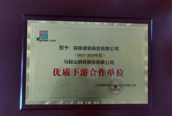 3月28日,2024年度鋼鐵中國第四屆安徽黑色金屬產業鏈供需交流高峰論壇會議在蕪湖召開,銅陵通馳有限公司分別獲得安徽長江鋼鐵有限公司“優質下游合作單位”榮譽稱號、馬鞍山鋼鐵股份有限公司“優質下游合作單位”榮譽稱號。