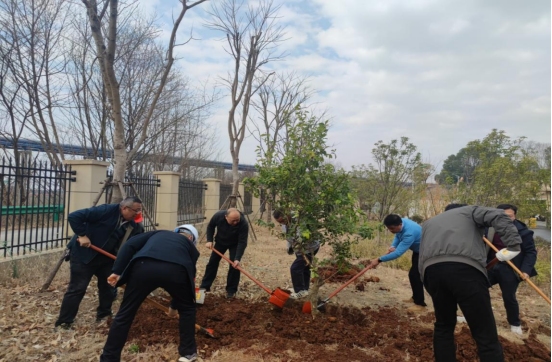 活動(dòng)現(xiàn)場(chǎng),處處洋溢著熱火朝天的勞動(dòng)景象,黨員干部帶頭揮鍬鏟土,大家分組協(xié)作,挖坑、施肥、栽苗、培土、踩實(shí)、澆水井然有序,分別種植了桂花樹、柿子樹、橘子樹、桃樹、月季、映山紅等花卉樹木140余株,大力營(yíng)造“三季有花、四季常綠”的生態(tài)景觀。