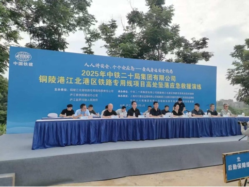 為筑牢鐵路施工安全防線,切實提升突發(fā)事故應(yīng)急處置能力,6月25日下午,江北港鐵路專用線公司攜手廬江縣鐵路建設(shè)辦公室、羅河鎮(zhèn)人民政府,于江北港鐵路專用線項目跨合銅高速公路特大橋1#墩附近,聯(lián)合主辦了一場緊張有序的T梁架設(shè)高處墜落事故應(yīng)急演練。此次演練由中鐵二十局集團有限公司銅陵港江北港區(qū)鐵路專用線項目經(jīng)理部承辦。