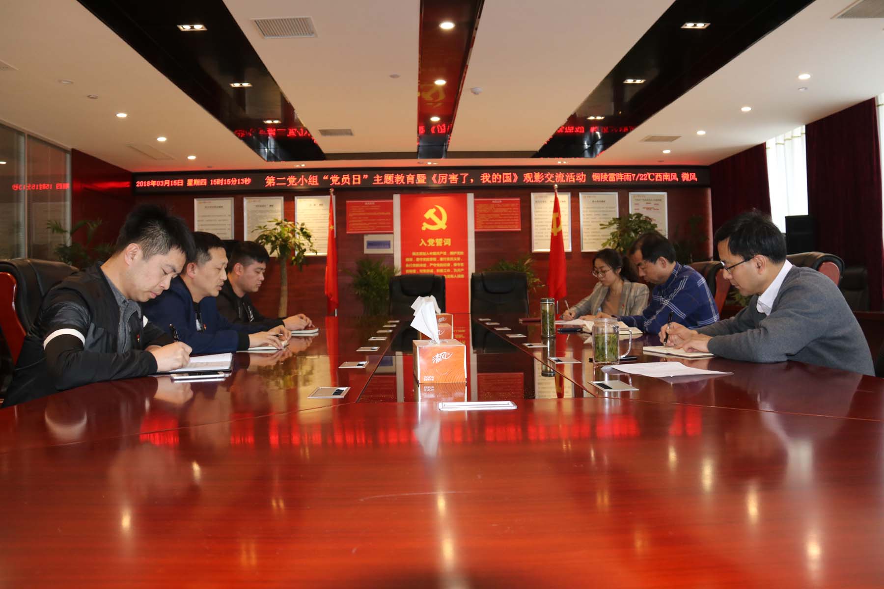 3月15日是2018年第三個(gè)黨員主題教育活動(dòng)日,公司機(jī)關(guān)黨支部圍繞全國(guó)“兩會(huì)”為主題,創(chuàng)新黨日活動(dòng)載體和方式,觀看大型紀(jì)錄片《厲害了,我的國(guó)》。觀影結(jié)束后召開黨小組專題學(xué)習(xí)會(huì)進(jìn)行討論交流。大家一致認(rèn)為,影片主要反映了黨的十八大以來,我國(guó)發(fā)生了翻天覆地的變化,將國(guó)家的偉大成就和變化在大銀幕上呈現(xiàn)出來,通過創(chuàng)新、協(xié)調(diào)、綠色、開放、共享的五大發(fā)展理念貫穿全片。西氣東輸、南水北調(diào)、港珠澳大橋、國(guó)產(chǎn)大飛機(jī)C919、量子通訊、天宮二號(hào)等方面取得的巨大成就,場(chǎng)面狀觀,氣勢(shì)恢宏,震撼人心,催人奮進(jìn)。通過集中看、談感受、聊心得,達(dá)到了活動(dòng)以學(xué)促工的目的和效果。