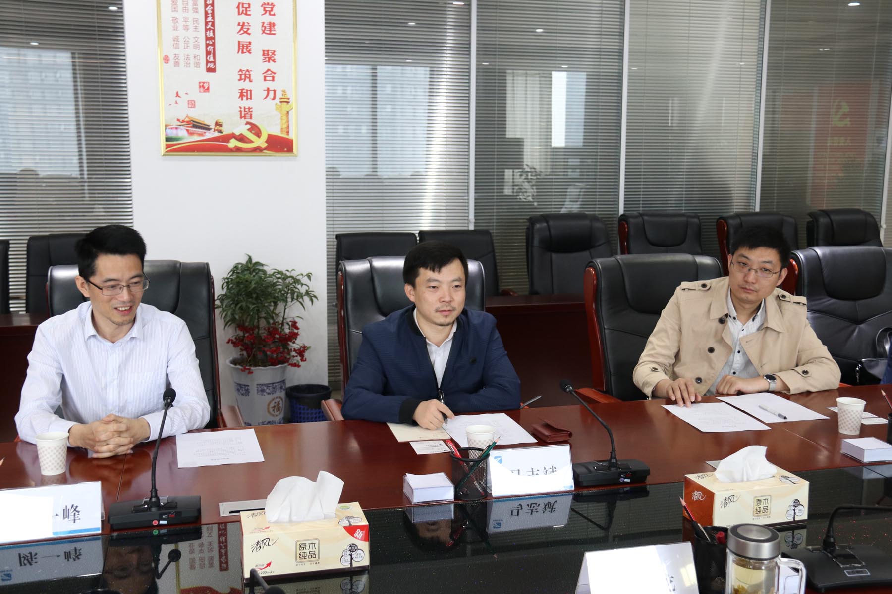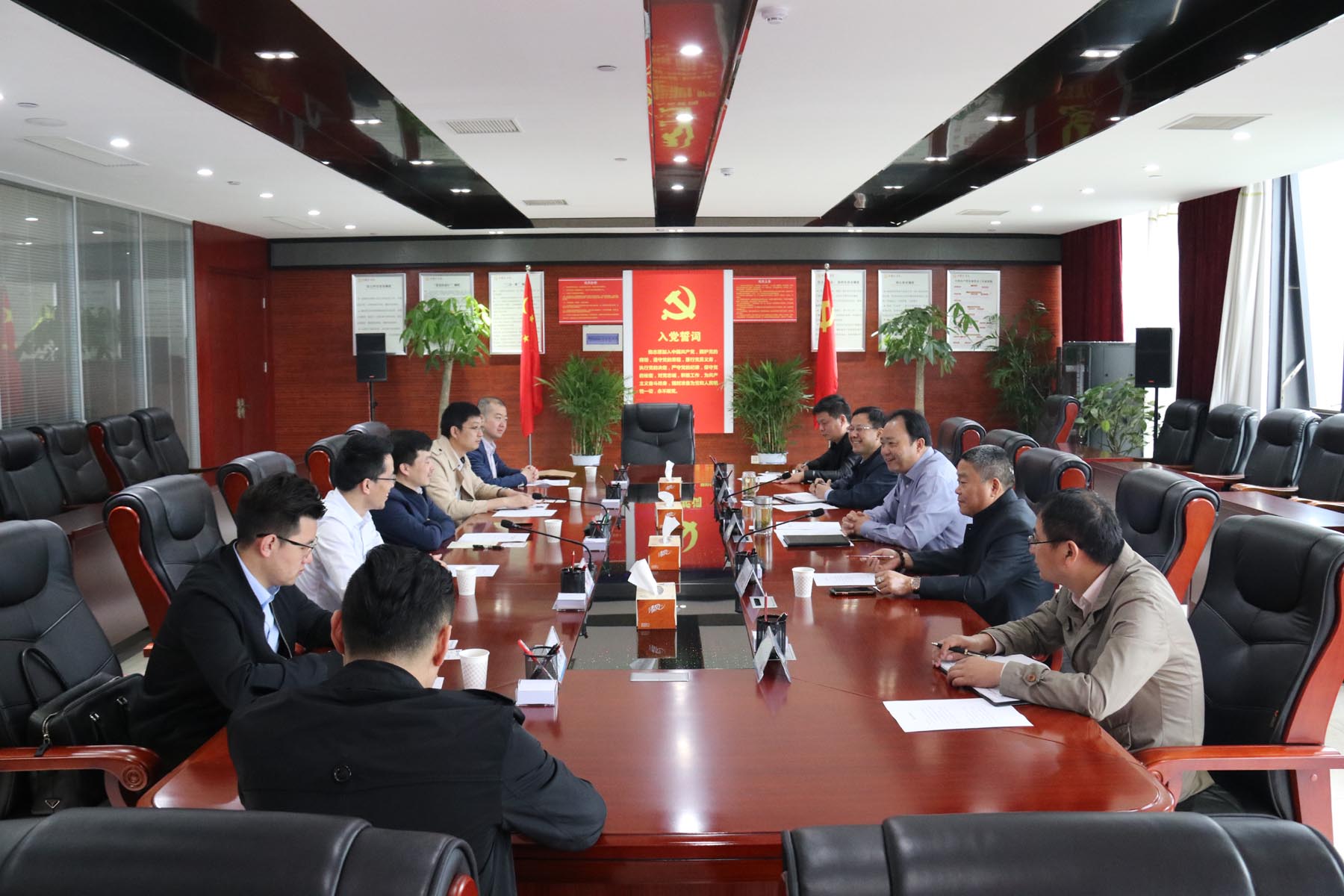4月26日上午,中煤礦業發展有限公司綜合管理部經理、中能化股權投資基金管理有限公司董事長馬志斌等一行來公司就開展戰略合作投資事宜進行交流會談。公司黨工委書記、董事長何成龍,公司黨工委委員、副總經理黃勇,安徽靈通投資集團董事長謝同寶及公司資產管理部、計劃合同部負責人參加座談交流活動。