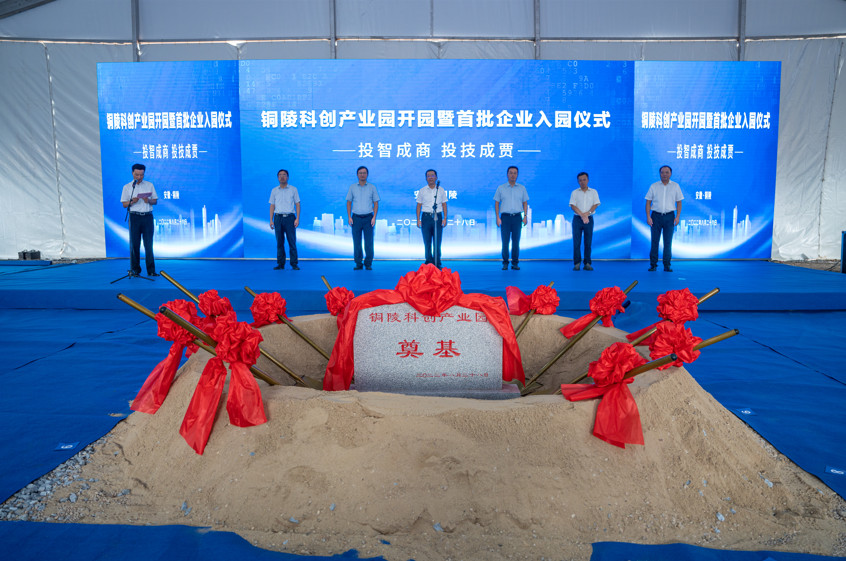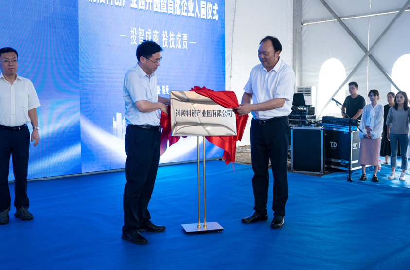 8月28日上午,銅陵科創(chuàng)產(chǎn)業(yè)園開園暨首批企業(yè)入園儀式舉行。市委書記丁純出席儀式并宣布開園。市委副書記、市長孔濤致辭。市委常委、常務(wù)副市長何田主持儀式。市領(lǐng)導(dǎo)馬軍、楊如松等出席。義安區(qū)委書記姚貴平與集團(tuán)公司黨委書記、董事長何成龍共同為銅陵科創(chuàng)產(chǎn)業(yè)園有限公司揭牌。