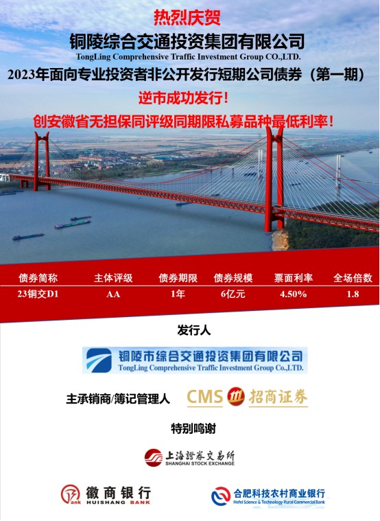 此次發(fā)行成功,創(chuàng)下安徽省同評(píng)級(jí)同期限私募品種歷史最低利率,倍數(shù)為1.8,是交投集團(tuán)在資本市場(chǎng)的又一次華麗亮相。不僅豐富了交投集團(tuán)直融產(chǎn)品體系,優(yōu)化了交投集團(tuán)負(fù)債利率水平,同時(shí)為后續(xù)交投集團(tuán)在資本市場(chǎng)的持續(xù)運(yùn)作打下堅(jiān)實(shí)基礎(chǔ)。