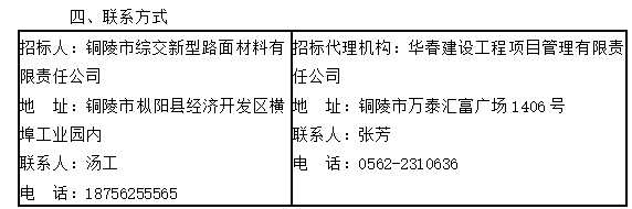 6、本次招標公告同時在銅陵市綜合交通投資集團有限公司(http://m.akpv.cn/)、安徽省招標投標信息網(http://www.ahtba.org.cn/)發布。