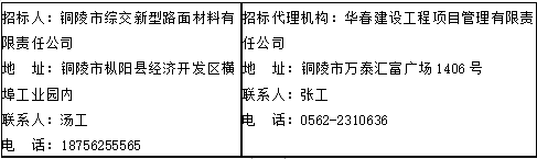 6、本次招標公告同時在銅陵市綜合交通投資集團有限公司(http://m.akpv.cn/)、安徽省招標投標信息網(http://www.ahtba.org.cn/)發布。