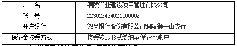 2.遞交投標文件(開標)地點為:銅陵興業建設項目管理有限公司開標室(銅陵市銅冠商務大廈1015室)。