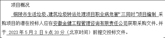 項(xiàng)目名稱:銅陵市生活垃圾、建筑垃圾轉(zhuǎn)運(yùn)處理項(xiàng)目職業(yè)病危害“三同時(shí)”項(xiàng)目編制