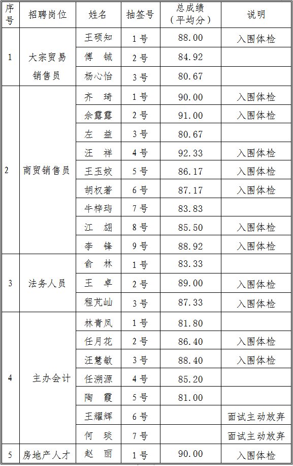 因公司經(jīng)營(yíng)業(yè)務(wù)發(fā)展需要,根據(jù)應(yīng)聘者現(xiàn)場(chǎng)面試綜合能力表現(xiàn)情況,結(jié)合公司儲(chǔ)備人才需求,經(jīng)集團(tuán)公司黨工委會(huì)議研究決定,現(xiàn)將交投集團(tuán)公司商貿(mào)銷(xiāo)售員等崗位招聘情況公示如下: