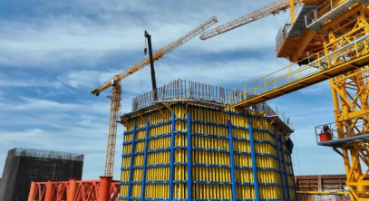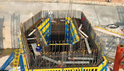 9米節段液壓爬模的使用是一次挑戰、一次跨越、一次革命。標志著主塔施工裝備邁上了新臺階,為實現主塔智能化、綠色化、快速化建造,項目部開展了各項創新研究。一是采用大噸位高爬架液壓爬模,架體連成整體,在爬升、澆筑中更加平穩、安全。二是配置液壓脫合模系統,替代傳統手動機械脫模,提高了脫模工效。三是采用智能液壓控制系統,實現同步爬升。配置視頻、風速、壓力、位移等信息反饋智能監控系統,實現對結構、環境、養護實時監測。四是自帶智能養護系統,實現混凝土冬季自動蒸養,其他季節造霧養護。五是設置專用電纜線槽、豎直旋梯、衛生間、消防水箱、專用排污管道,實現標準化作業、綠色施工。