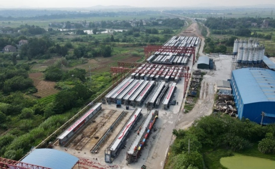 為確保梁板的高質量順利澆筑,江北港鐵路專用線公司督促施工單位堅持標準化施工和精細化管理,采用胎模法綁扎鋼筋,確保間距與保護層合格率;首澆前多次試驗優化混凝土配合比,保障T梁強度合格、“內實外美”;采用智能張拉壓漿設備,實現關鍵工序全流程智能化監控,有效規避傳統工藝中的質量波動。